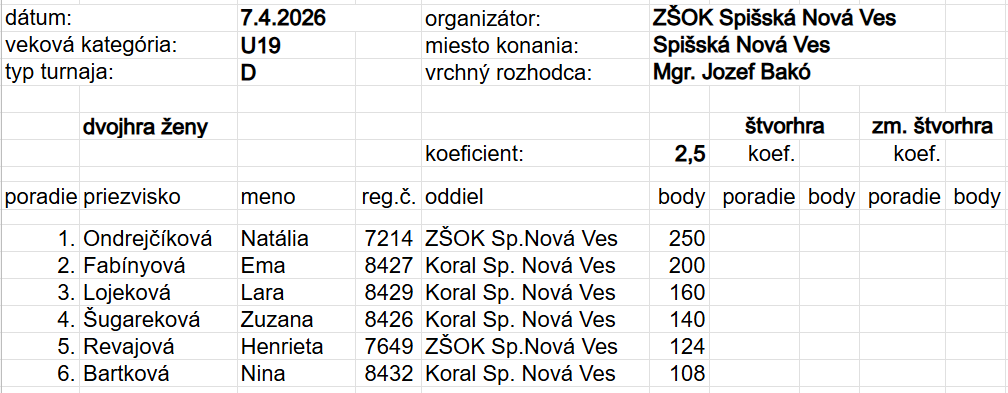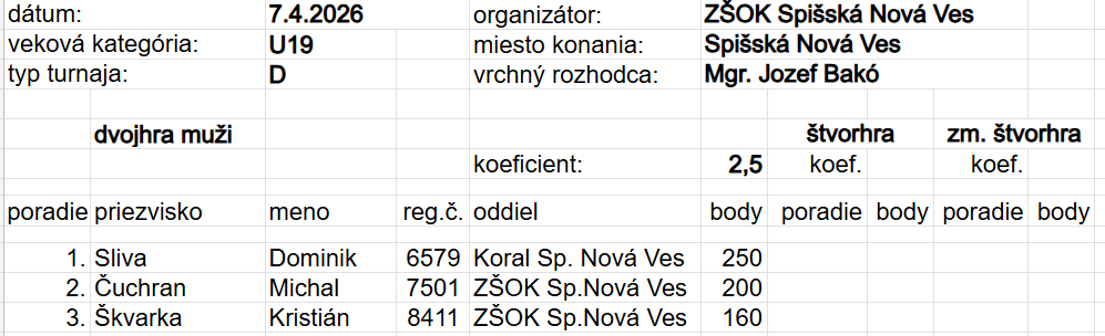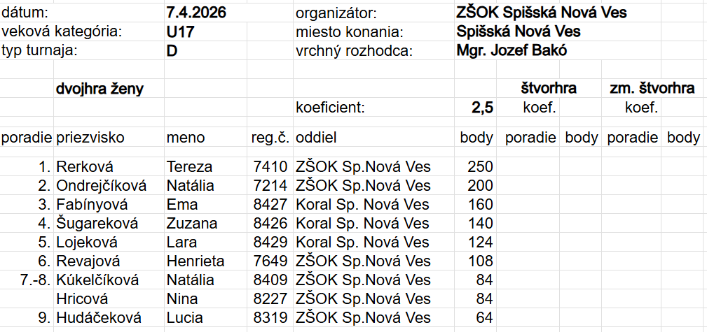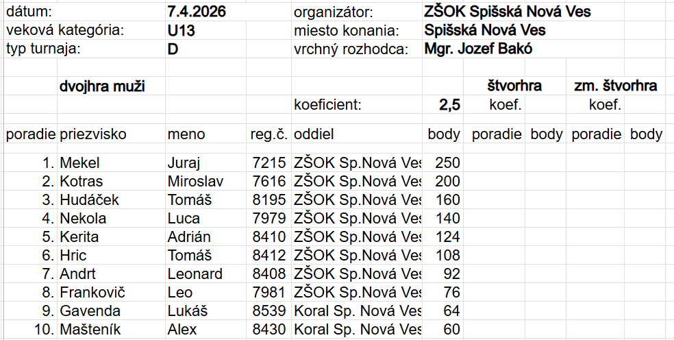 K umiestneniam i získaným bodom všetkým hráčom gratulujeme a tešíme sa na ďalšie turnaje.
